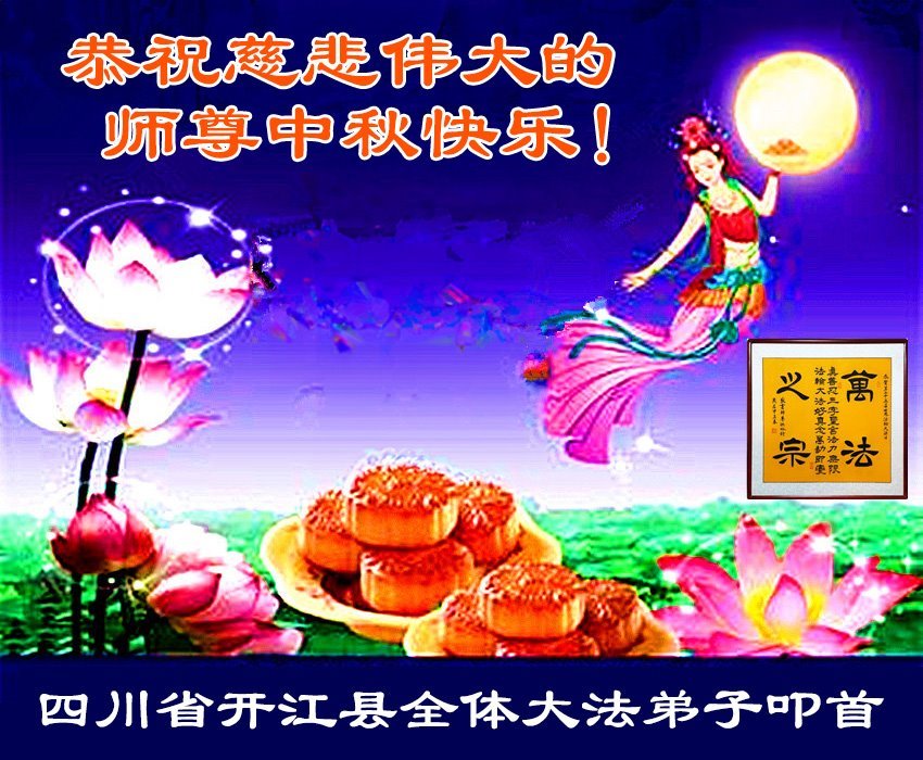 四川省達州市開江縣大法弟子恭祝慈悲偉大的師尊中秋愉快!