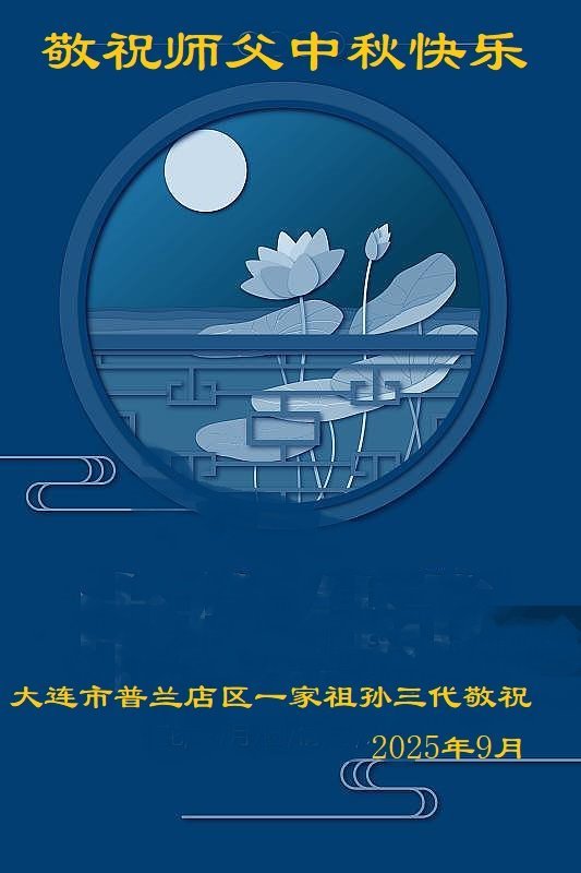弟子代表全家人,恭祝師尊中秋節快樂!感恩師尊對眾生的護佑,對弟子的守護。弟子一定好好修心,做好三件事,恭候師尊!