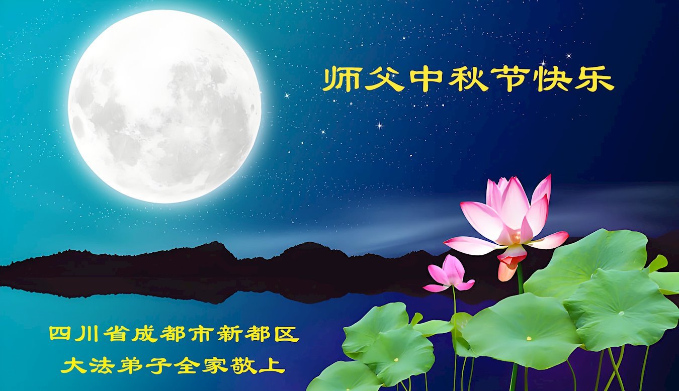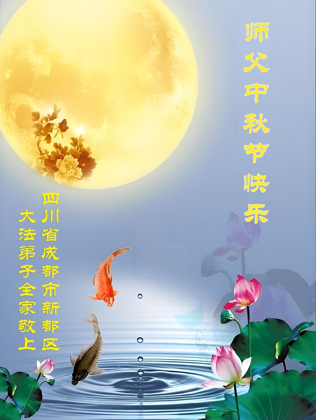 四川省成都市新都區大法弟子全家恭祝慈悲偉大的師父中秋節快樂!