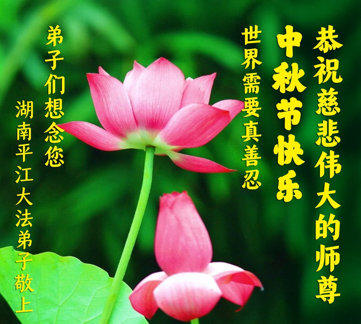 恭祝師尊中秋節快樂!感恩師尊對我們的慈悲救度!謝謝師尊!真善忍好!法輪大法好!