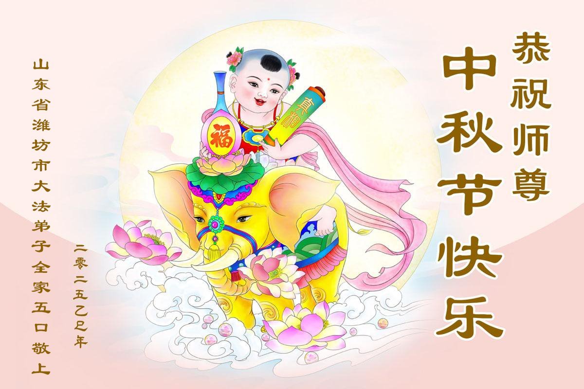 山東省濰坊市大法弟子及全家人恭祝師尊中秋快樂!