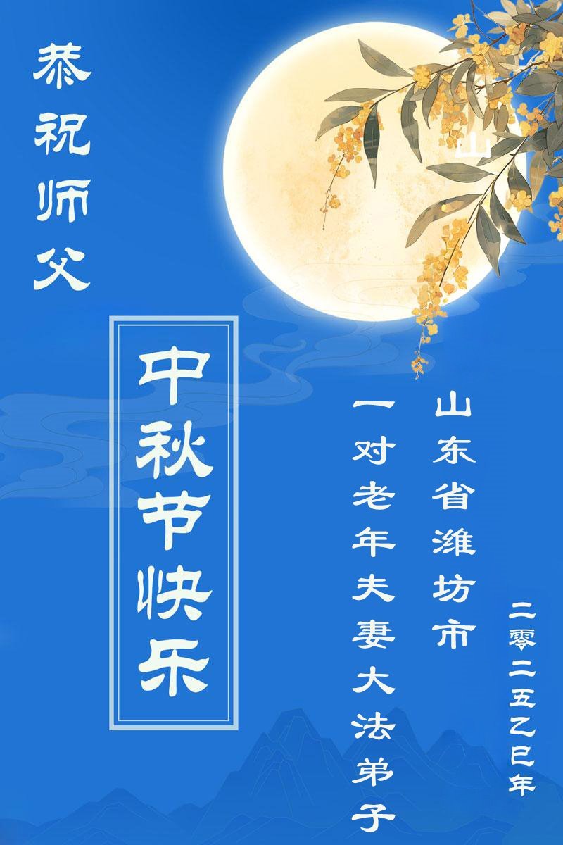 山東省濰坊市一夫妻大法弟子恭祝師尊中秋快樂!