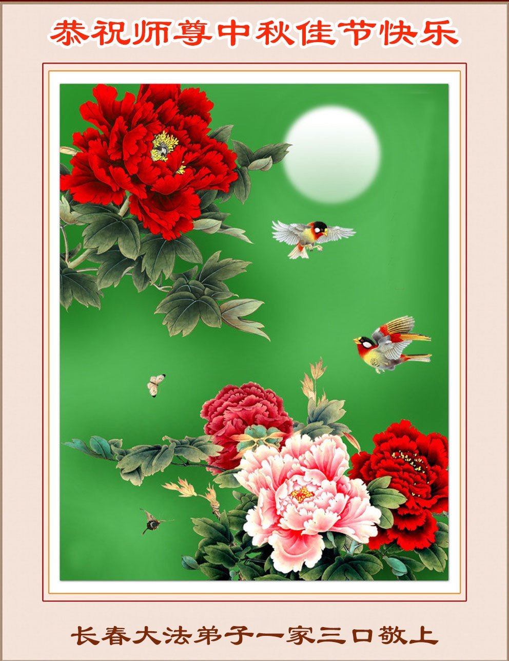 吉林省長春大法弟子一家三口恭祝師尊中秋佳節快樂!