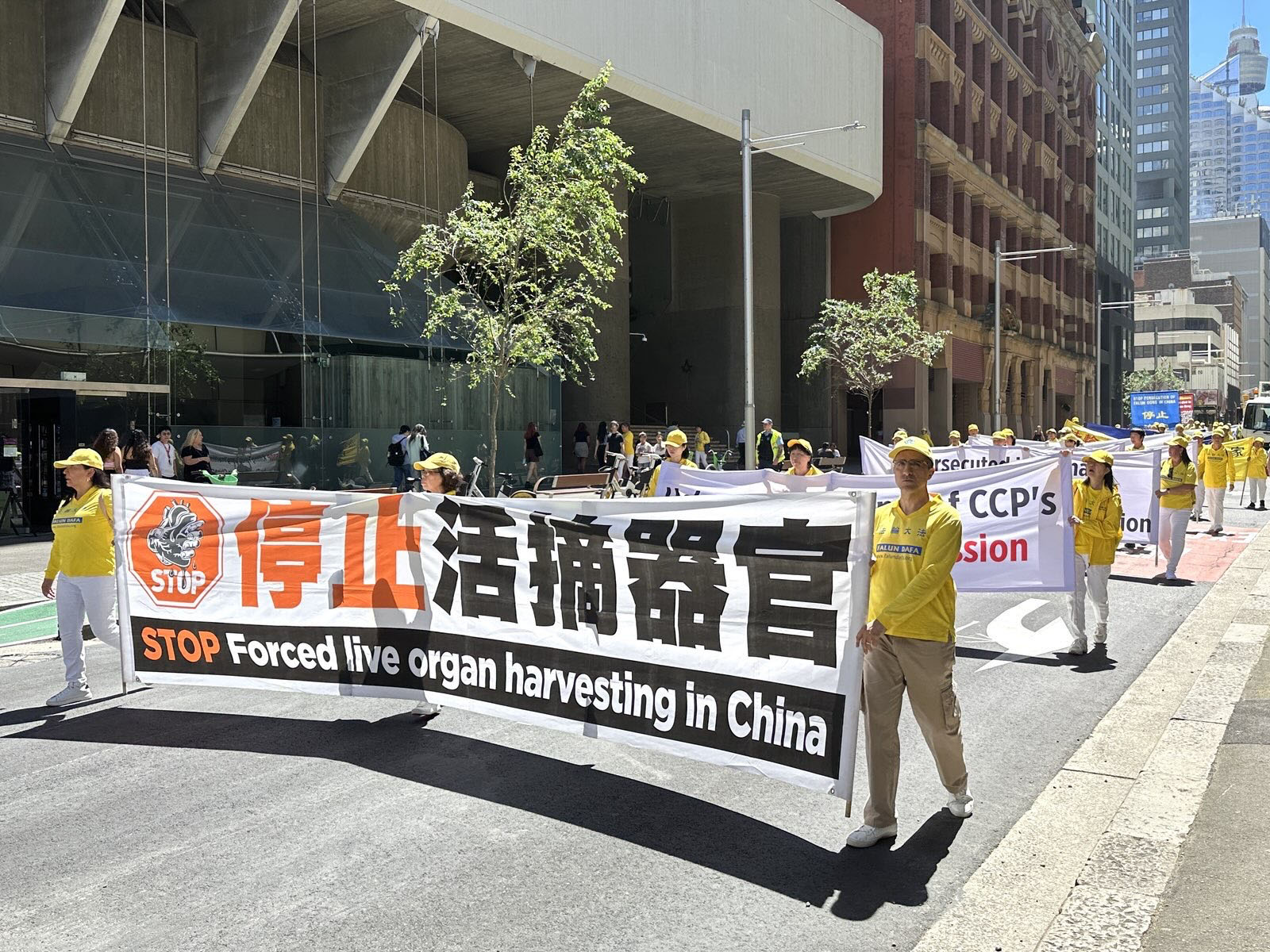 悉尼律師達西・拉金(Darcy Larkin)也讚歎不已:「(法輪功學員的)遊行隊伍太美了!我喜歡他們的音樂,非常平和。明亮的黃色也令人驚豔。」