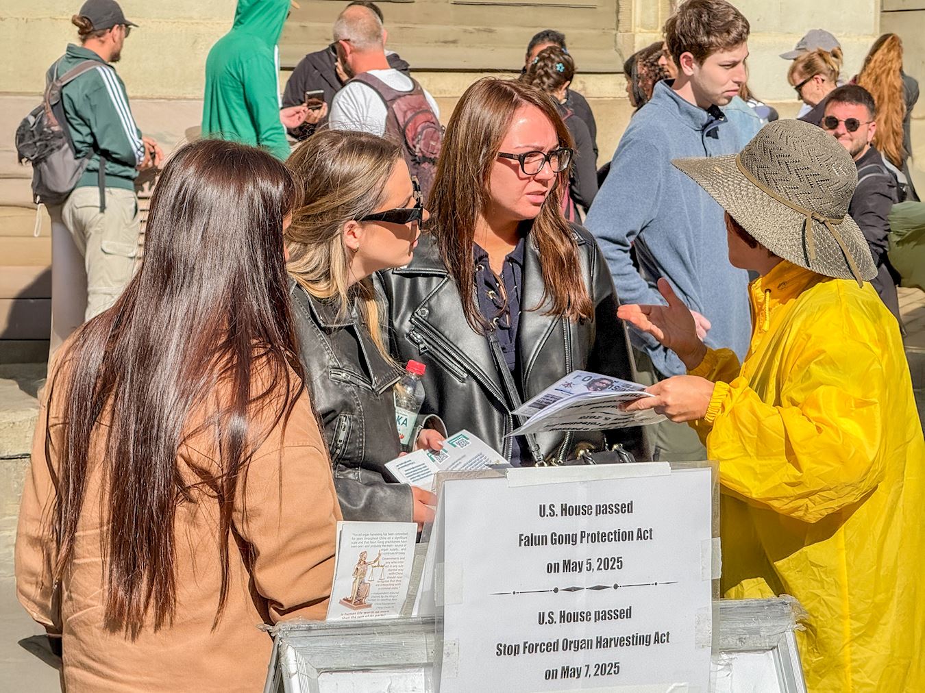 一位來自大陸從事電商行業的年輕人,一見到真相展位就對學員表示,她知道法輪功非常好,中共幹了很多的壞事。「在國內我經常翻牆看新聞,看法輪功學員的自媒體。今年在美國住了半年,了解了很多中共迫害法輪功,活摘法輪功學員器官以及跨國鎮壓法輪功的罪行,中共真的是太邪惡了。」她說:「我早就知道那個所謂的天安門自焚是騙人的,那是中共為迫害法輪功編造導演的假新聞。」