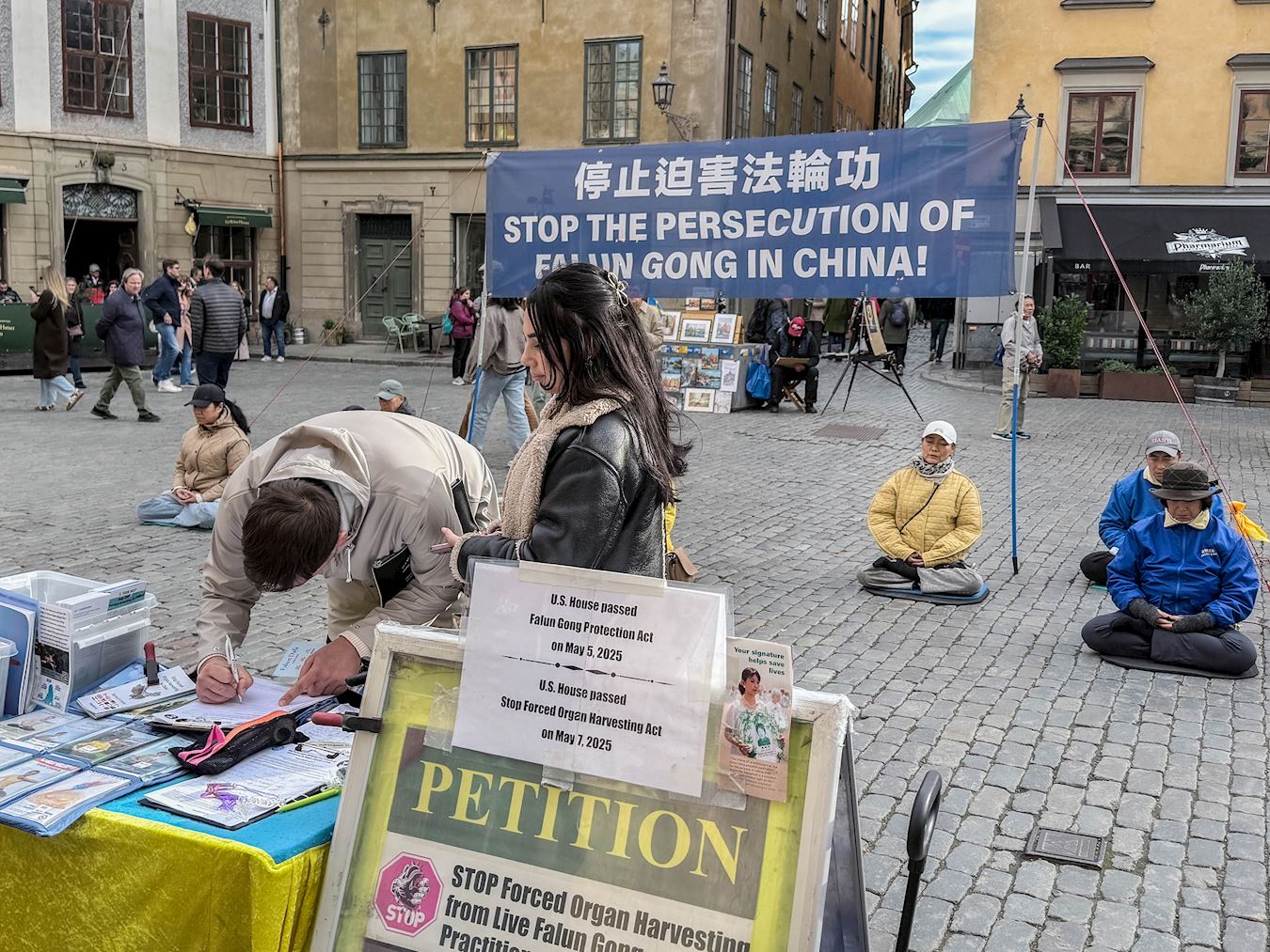 在活動現場,一位瑞典先生看到遊人絡繹不絕地前來簽名聲援法輪功,就徑直走上前和學員聊了起來。他介紹自己是瑞典的一名記者,並告訴學員他很清楚中共活摘器官這個事情是真實存在的。