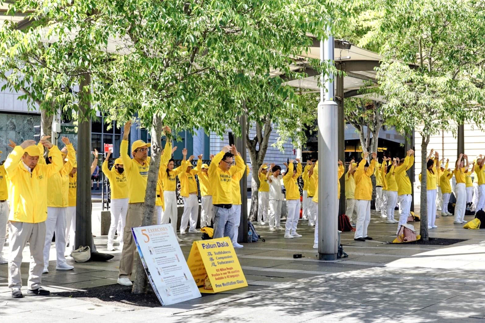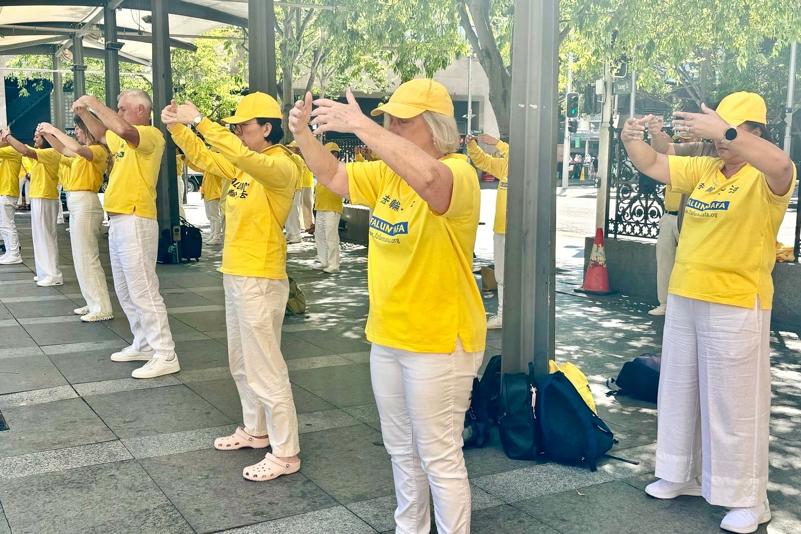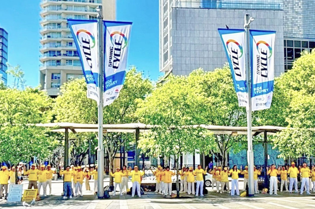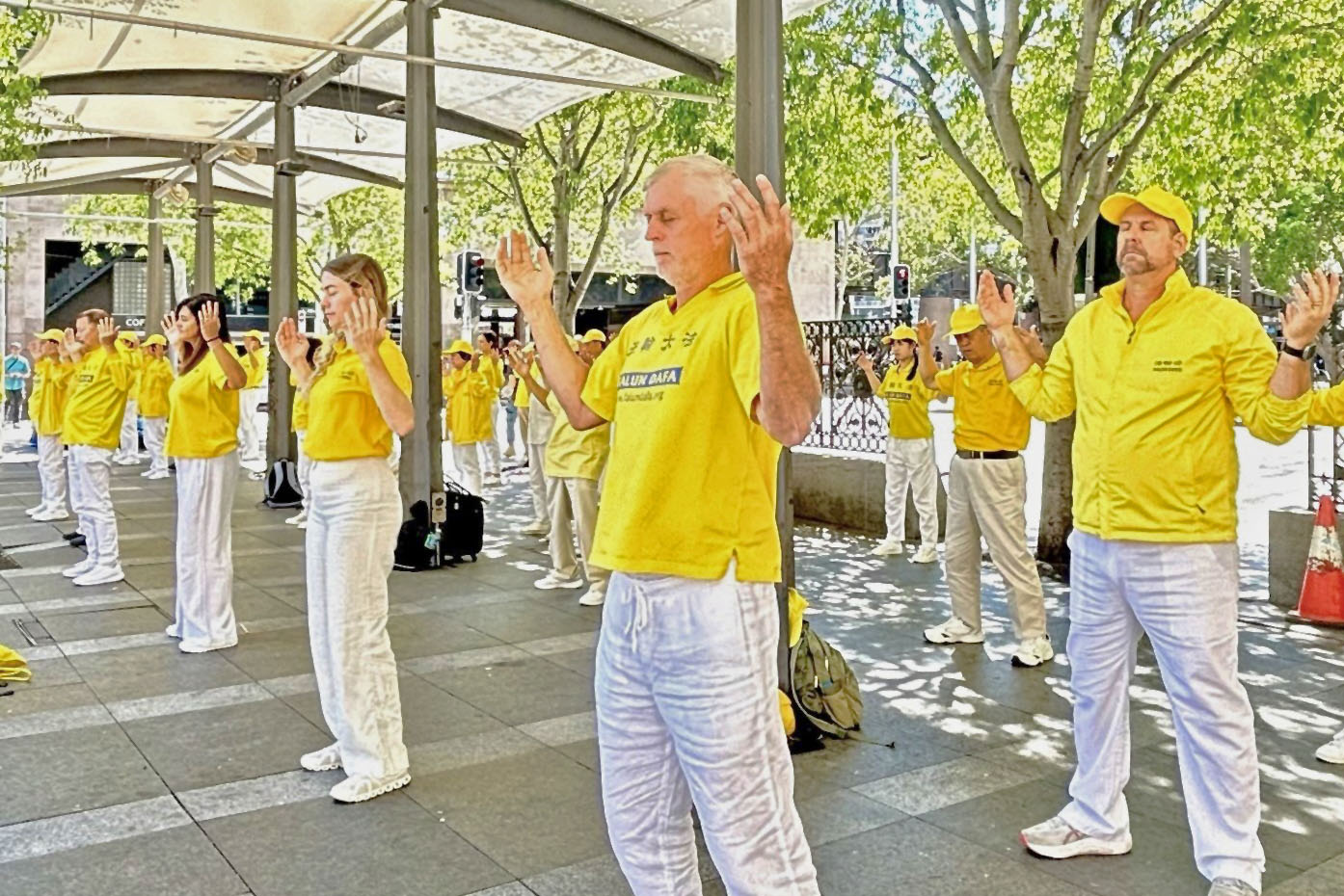在海關大樓廣場舉辦講真相活動的前一天,法輪功學員在悉尼馬丁廣場(Martin Place)舉行了大型集體煉功活動,並在市中心進行了盛大遊行,當天的活動吸引了大量市民遊客觀看。