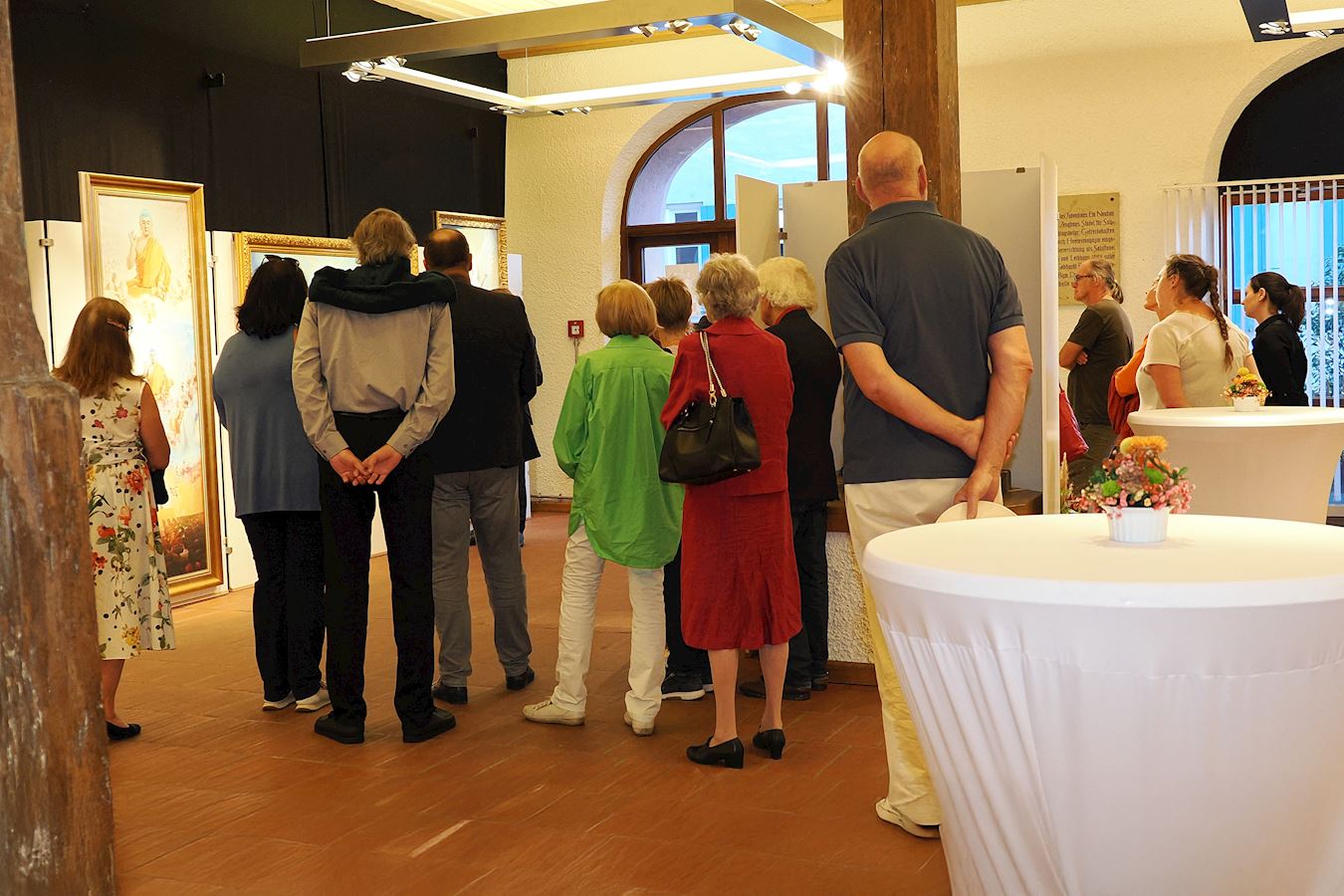 ![]() 圖1~4:二零二五年九月十九日在德國多瑙沃特的軍械館舉辦「真善忍美展」的開幕酒會上,現場賓客眾多,吸引了很多參觀者。 |