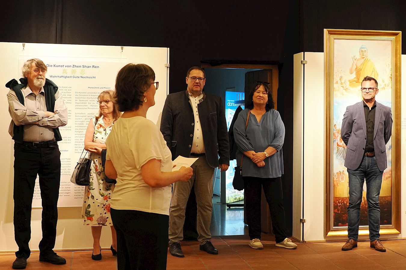 ![]() 圖5:二零二五年九月十九日在德國多瑙沃特的軍械館舉辦「真善忍美展」的開幕酒會上文化事務專員致辭。 |