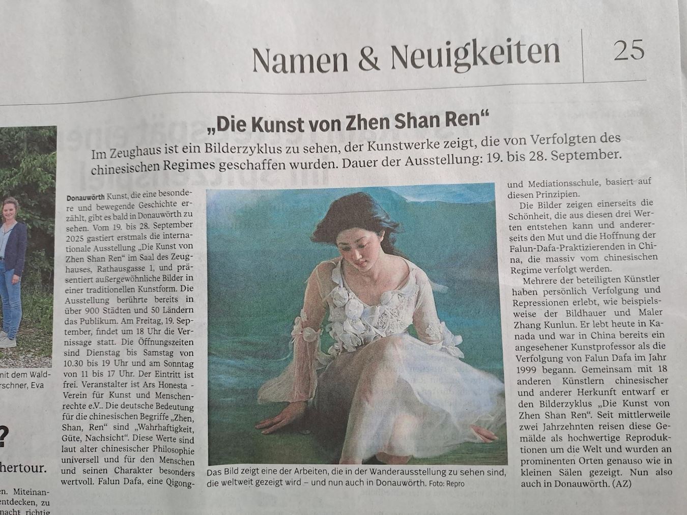 德國《多瑙沃特報》(Donauwörther Zeitung)提前以整版報導介紹了此次展覽。這家報紙隸屬德國發行量極高的《奧格斯堡日報》(Augsburger Allgemeine)集團,是當地最具影響力的主流媒體之一。