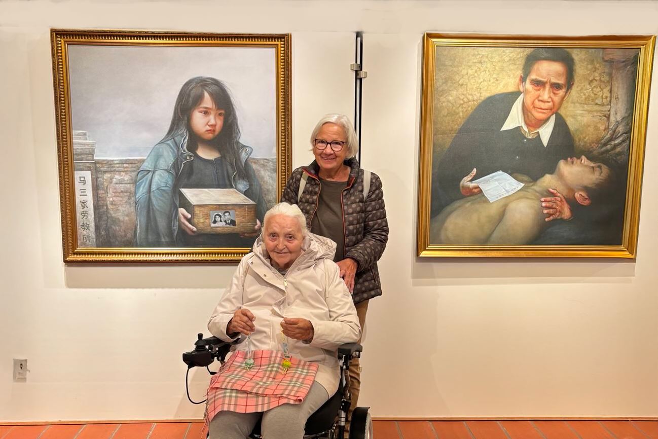 ![]() 圖12:一位女士陪同輪椅上的年長者觀展,耐心地為她朗讀每幅作品的說明。 |