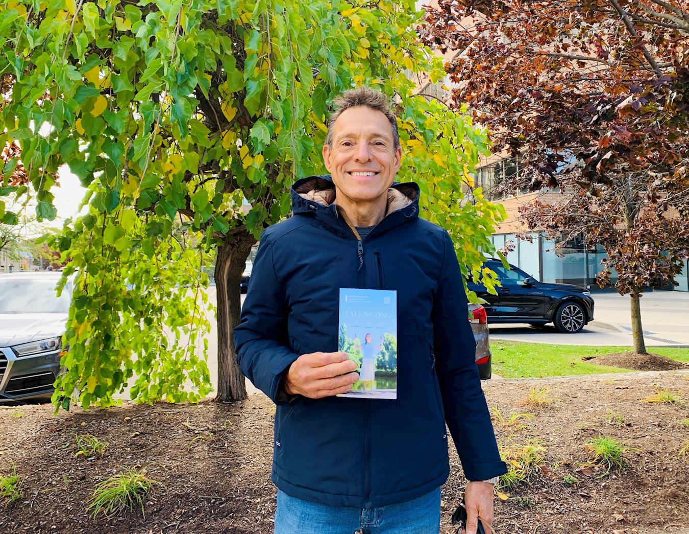 托尼(Tony)是當地的居民,他和家人一起來觀看感恩節遊行,當天國樂團的隊伍經過時,他們一家人都為其鼓掌。托尼表示:「這個樂團太棒了!毫無疑問,排名第一,是這次遊行中排名第一的樂隊。」隨後,學員向他介紹了這個樂團的成員都是法輪功修煉者,他便詢問學員法輪功是在哪裏,學員告訴他現在已洪傳全世界,並向他介紹了法輪功是按「真、善、忍」修煉,還向他推薦了網上教功網站。托尼表示贊同,接過傳單後,表示感謝。