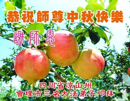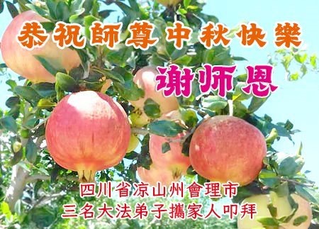 四川省涼山州會理市三個大法弟子攜家人恭祝師父中秋快樂!