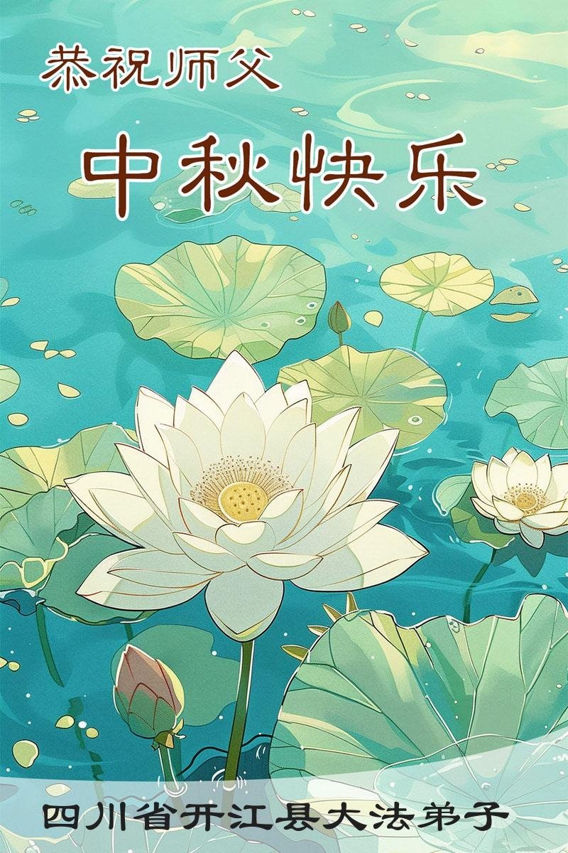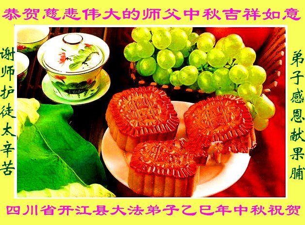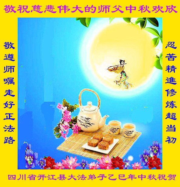 尊敬的師父您好!您辛苦了!中秋佳節即將來臨,恭祝師父中秋節快樂!謝謝師父對弟子的救度之恩!您為弟子承受了那麼多的業力。弟子唯有做好三件事,配合好整體多救人。弟子叩拜師父!感恩師父!