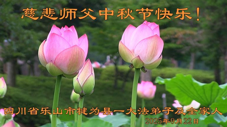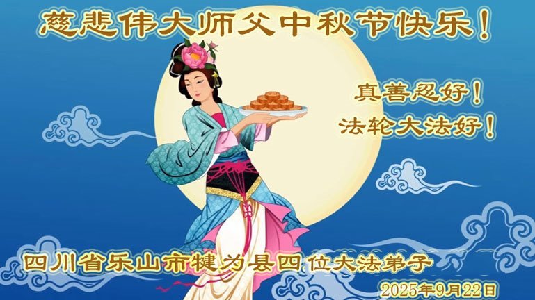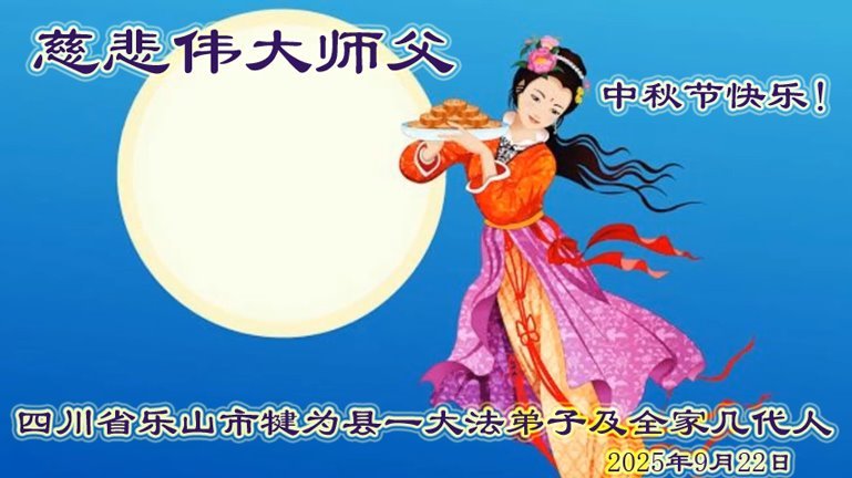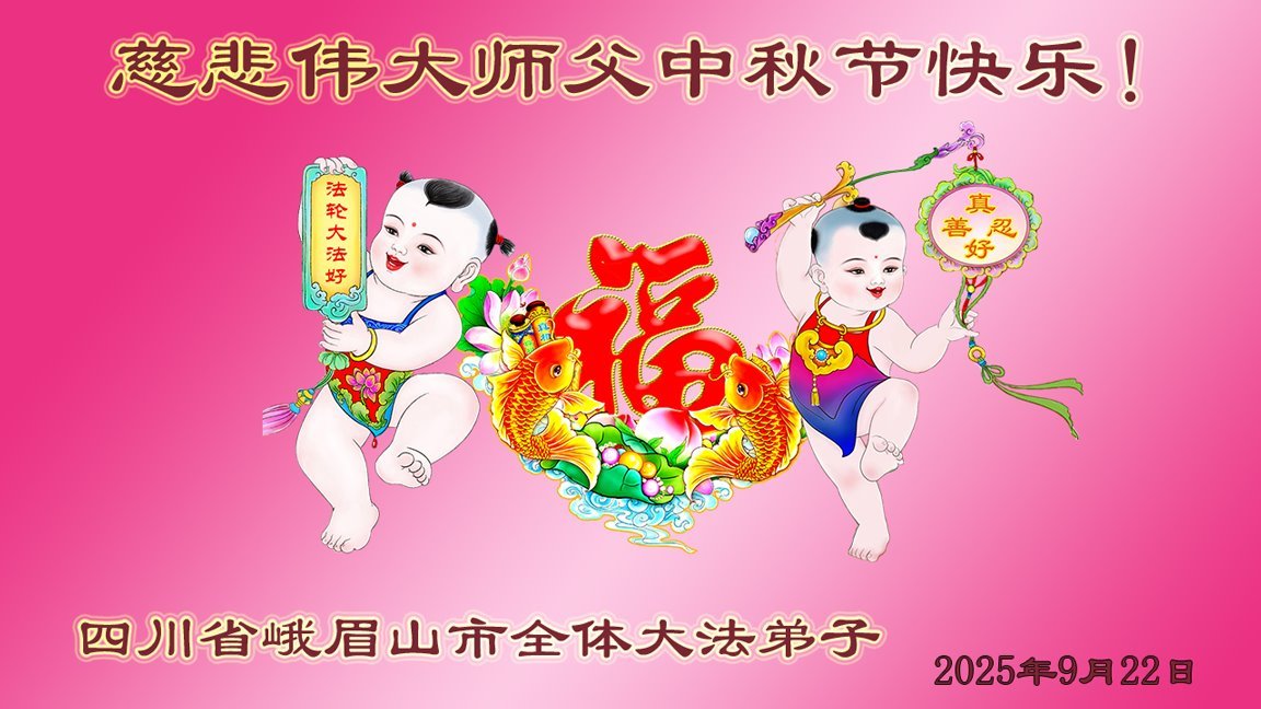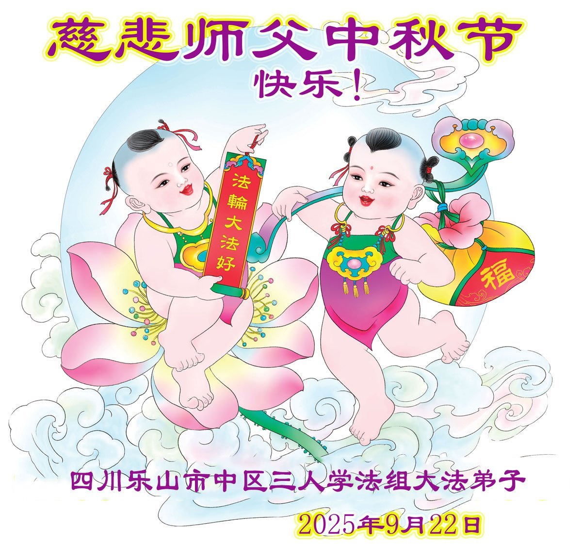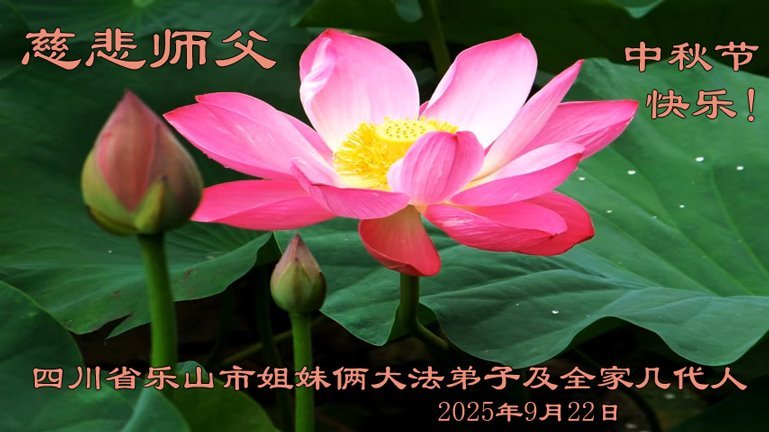 四川省樂山市姐妹倆大法弟子及全家人恭祝慈悲偉大師父中秋節快樂!