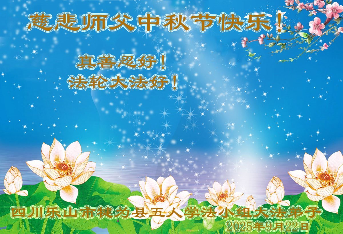 四川省樂山市犍為縣五人學法小組大法弟子恭祝慈悲偉大的師父中秋節快樂!