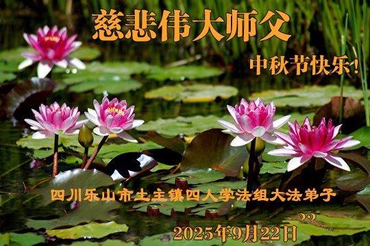 四川省樂山市土主鎮四人學法組大法弟子恭祝偉大慈悲師父中秋節快樂!
