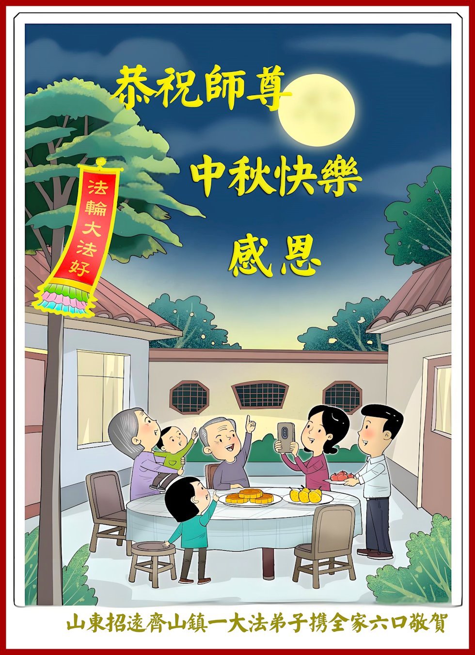 我自從修了法輪大法,身體上一切嚴重的病症全消失了,全家人因此都感恩大法救度!相信大法是正法,都退出了邪黨一切組織。孫女也學大法了,成績不斷提升。中秋節是闔家團圓節,我們全家想念師父!恭祝師尊中秋快樂!