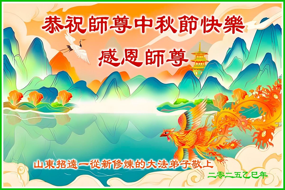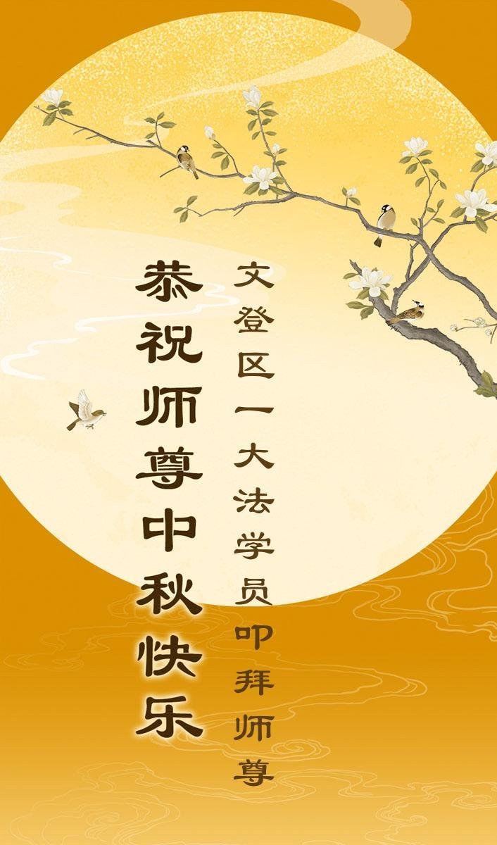 山東省威海市文登區一大法學員恭祝師父中秋快樂!