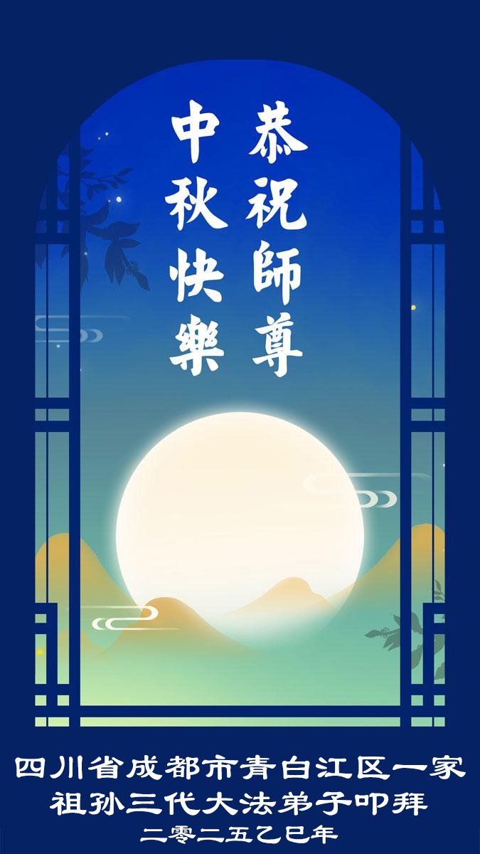 四川省成都市一大法弟子全家恭祝師父中秋快樂!