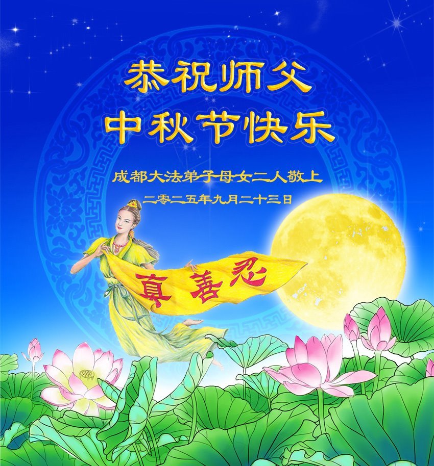 四川省成都市一大法弟子母女二人恭祝師父中秋節快樂!