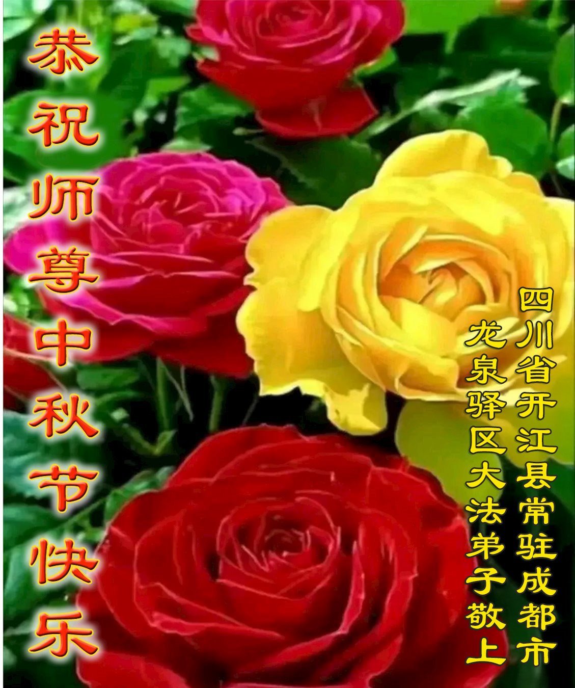 四川省成都市七十五歲大法弟子恭祝慈悲偉大的師尊中秋節快樂!