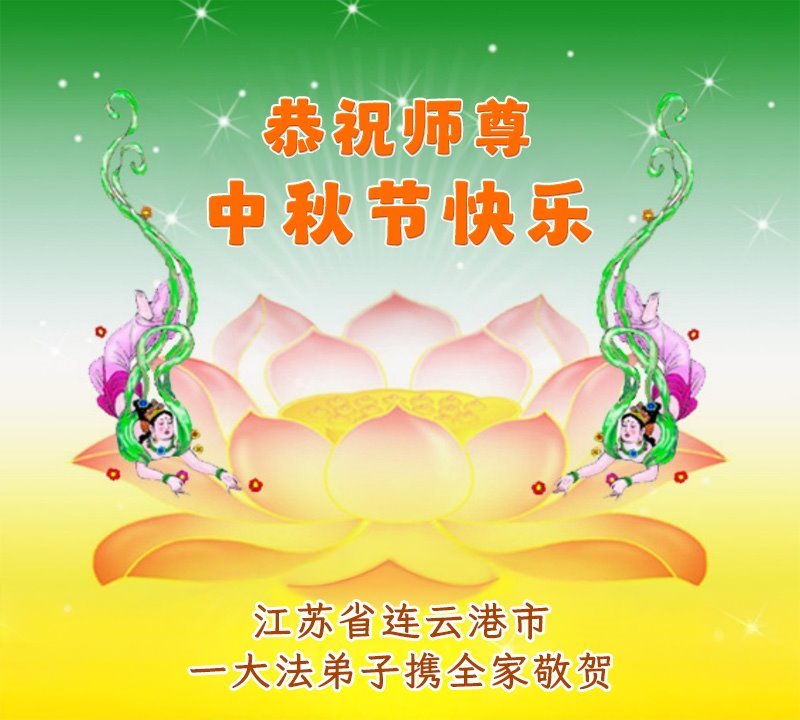 江蘇省連雲港市一大法弟子攜全家恭祝慈悲偉大的師尊中秋節快樂!