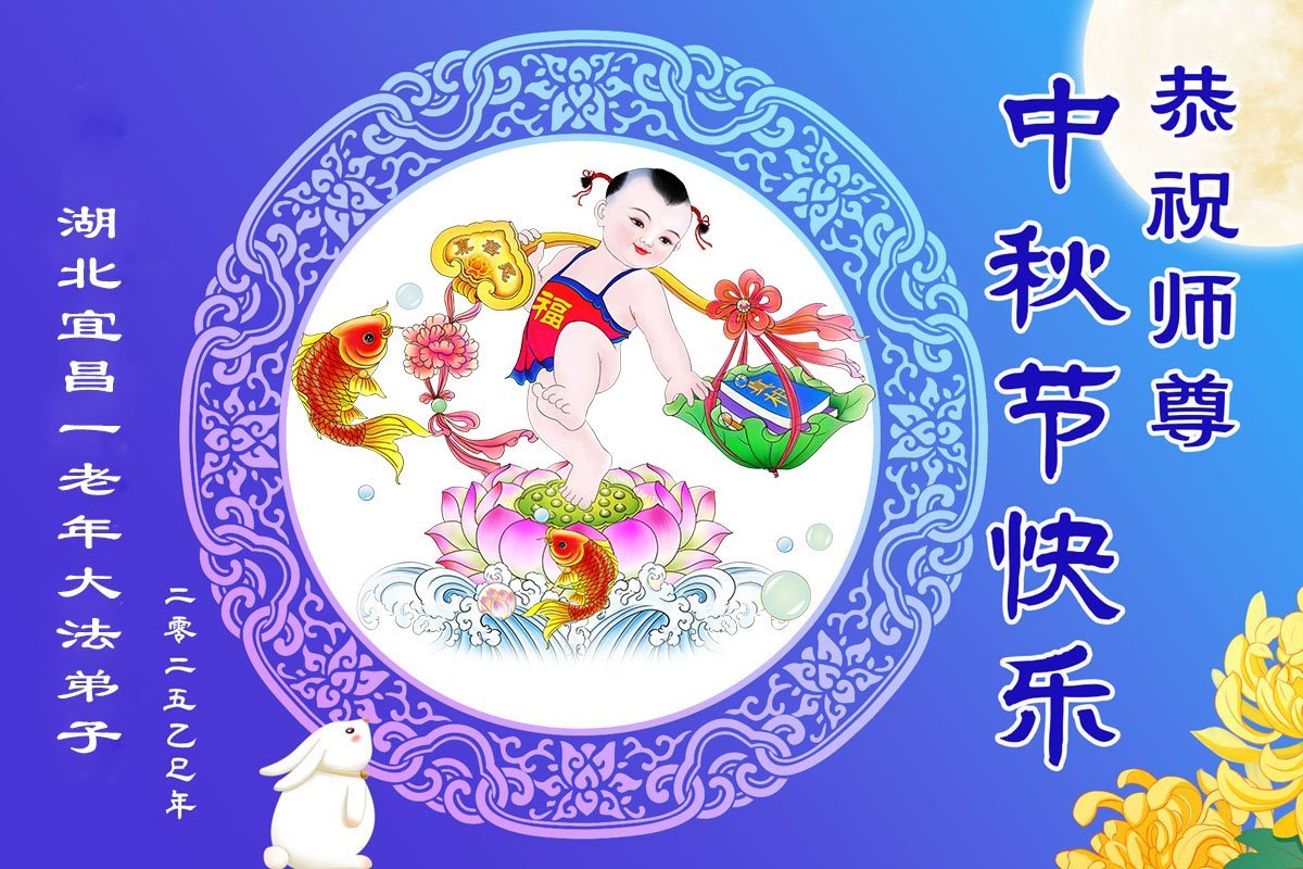 湖北宜昌一老年大法弟子敬祝師尊中秋快樂!