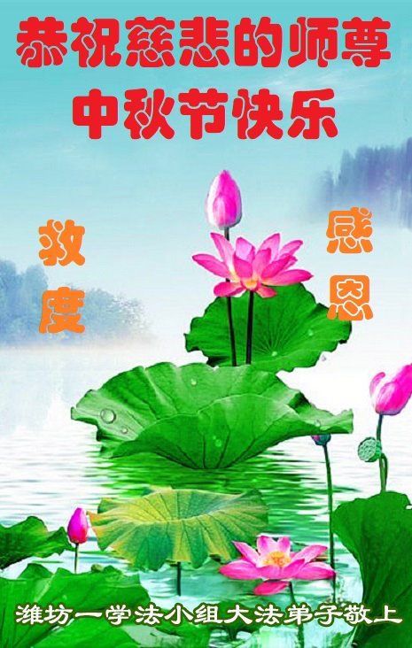 山東省濰坊一學法小組大法弟子恭祝慈悲偉大的師尊中秋節快樂!