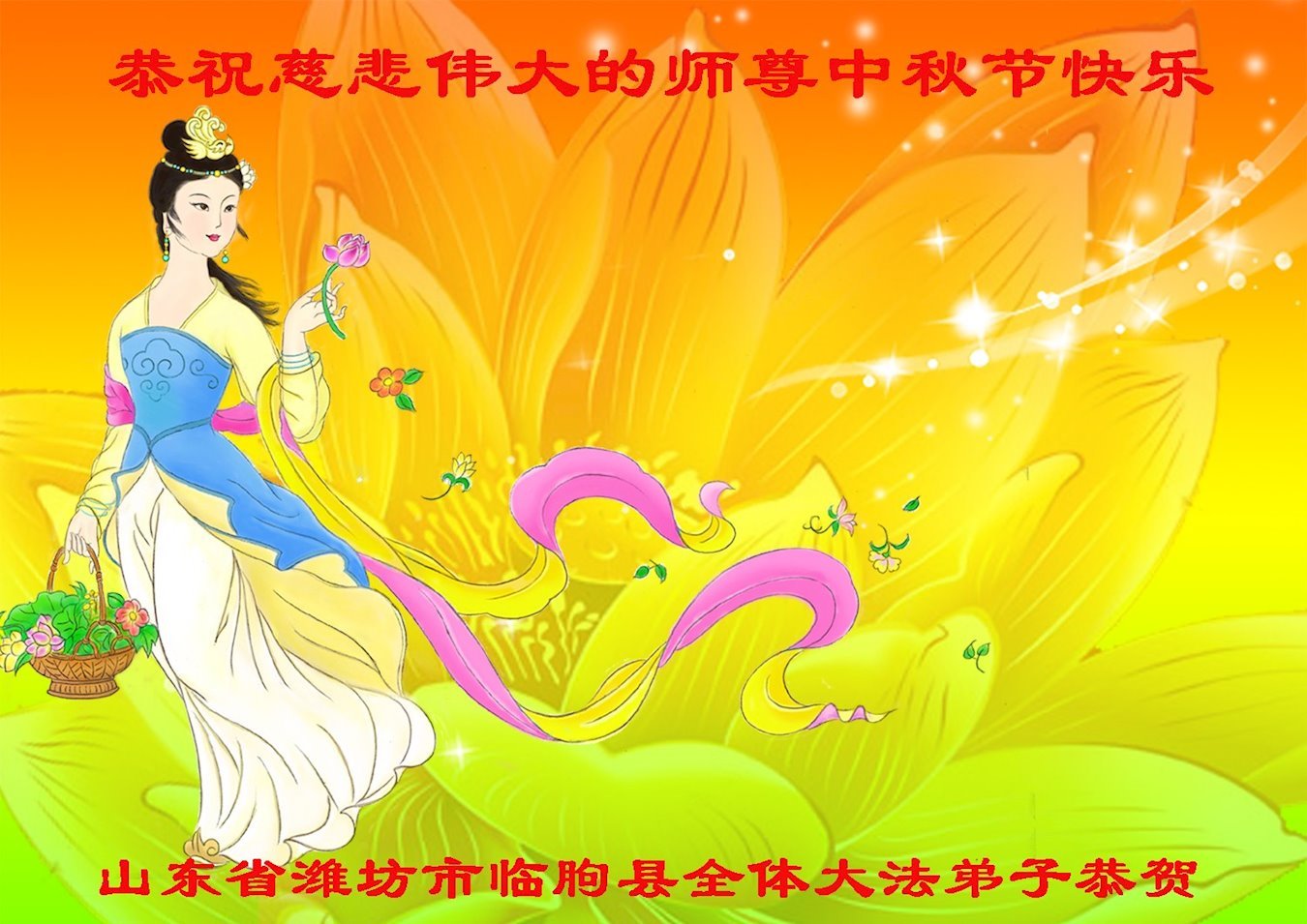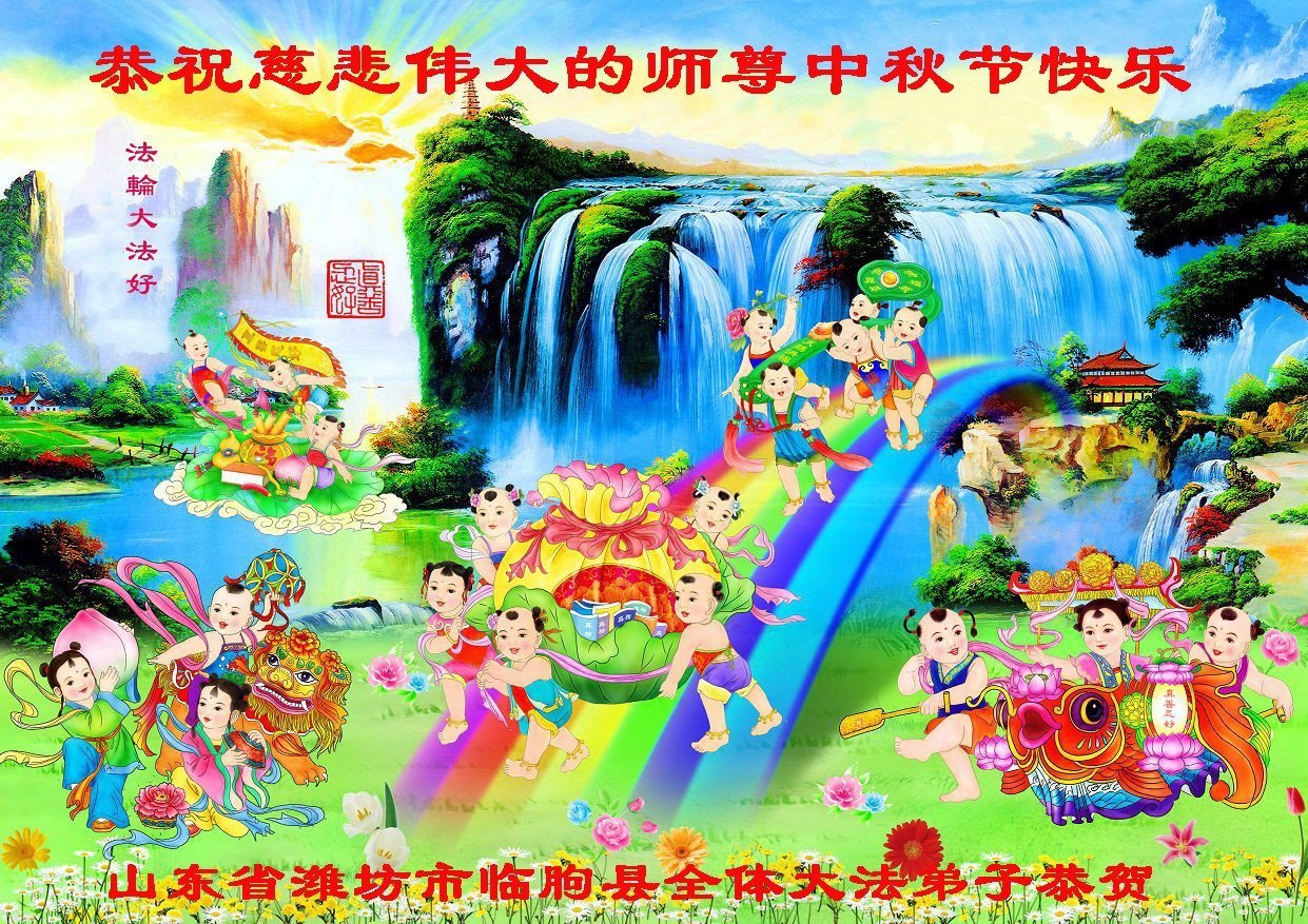 山東省濰坊市臨朐縣楊善一學法小組大法弟子恭祝慈悲偉大的師尊中秋節快樂!