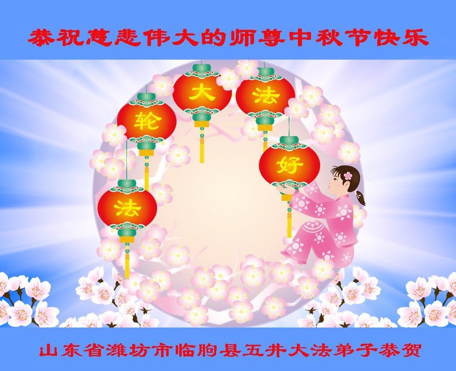 山東省濰坊市臨朐縣五井大法弟子恭祝慈悲偉大的師尊中秋節快樂!