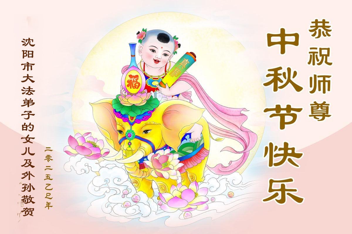 遼寧省瀋陽市大法弟子的女兒及外孫恭祝師尊中秋節快樂!