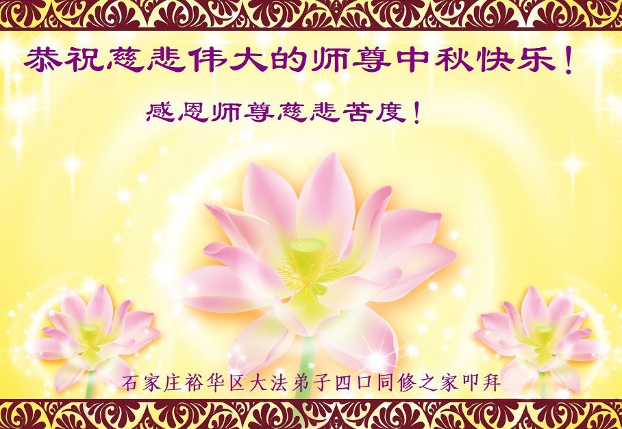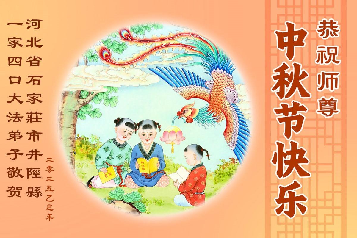 河北省石家莊裕華區一大法弟子四口之家恭祝慈悲偉大的師尊中秋快樂!
