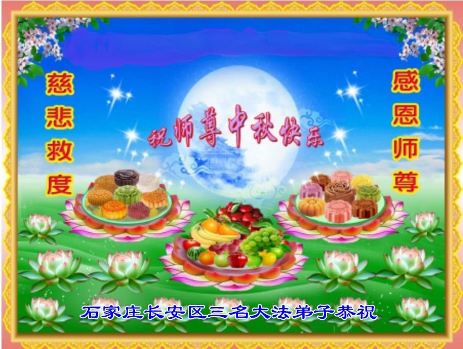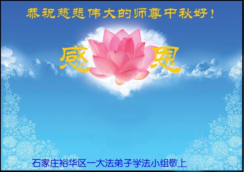 河北省石家莊裕華區一學法小組大法弟子恭祝慈悲偉大的師尊中秋快樂!