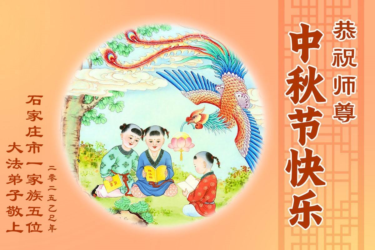 河北省石家莊市四位大法弟子及全家七口恭祝師尊中秋快樂!
