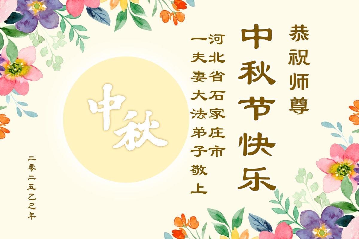 河北省石家莊市一夫妻和女兒大法弟子及家人恭祝師父中秋快樂!