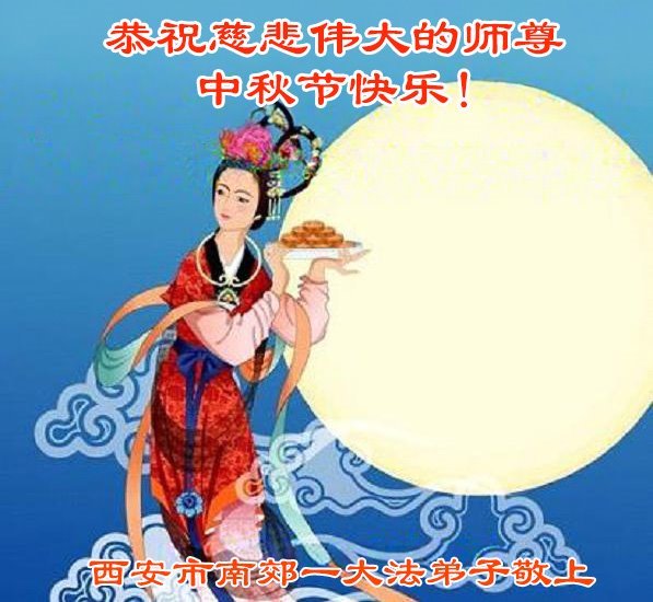陝西省西安市南郊一大法弟子恭祝慈悲偉大的師尊中秋節快樂!