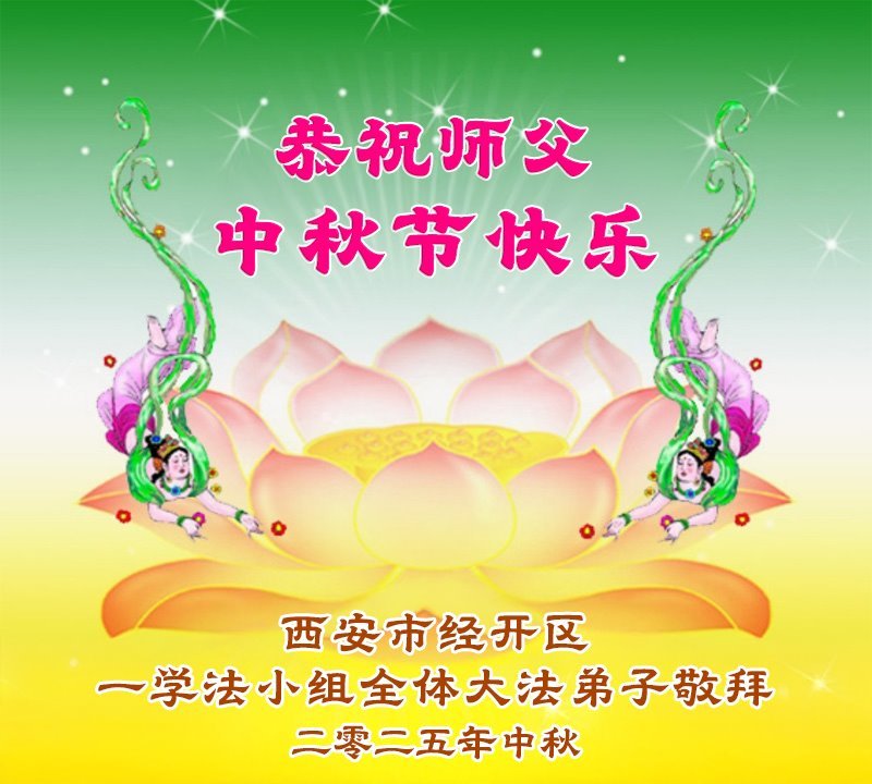 陝西省西安市經開區一學法小組全體大法弟子恭祝師父中秋節快樂!