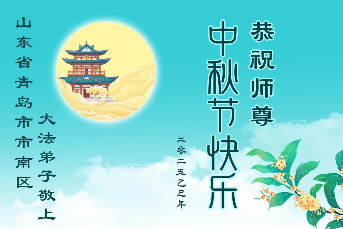 山東省青島市兩個學法小組大法弟子恭祝師尊中秋快樂!