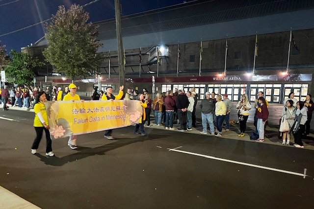 每年秋季,返校日是明尼蘇達大學最熱鬧、最具傳統意義的節日之一。整個一週,校園內洋溢著節日的氣氛,其中最令人期待的,莫過於來自各個學生組織和社區團體的返校日遊行(Homecoming Parade),每個隊伍都會精心布置。明尼蘇達大學法輪功雙城俱樂部自從成立以來,已經有十幾年參加返校日遊行活動,每一次都受到觀眾的熱烈歡迎。