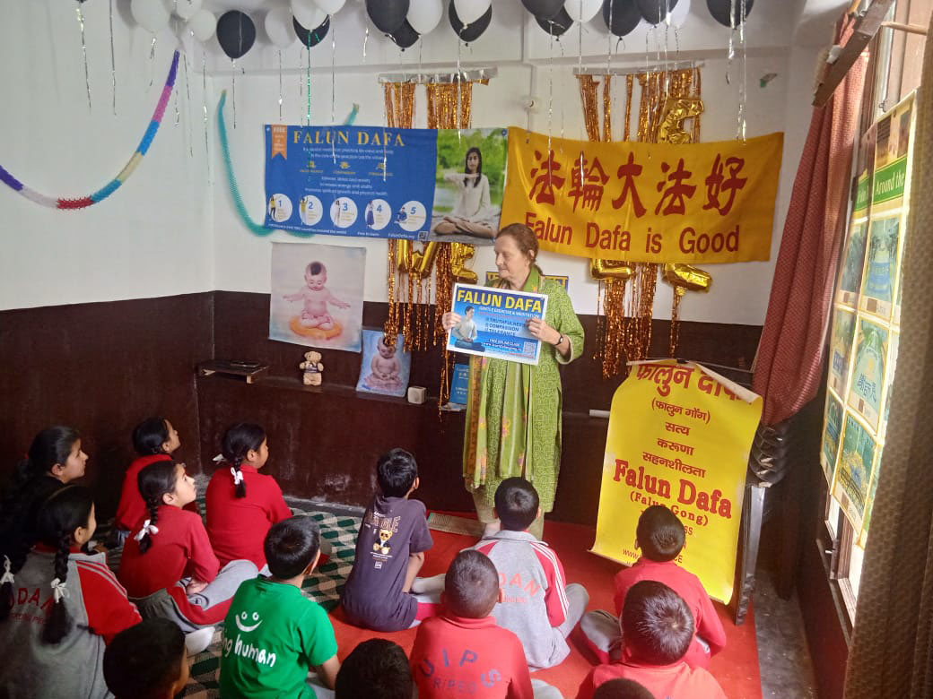 這位法輪功學員聯繫了當地的學校和社區組織,舉辦弘法活動。她帶去了書籍、雜誌、傳單、書籤、海報等介紹法輪大法、講述中共在中國迫害法輪功的真相資料。在這次行程中,法輪功學員在十三所學校和一個兒童拳擊俱樂部辦弘法班,並走訪了瑞康佩奧(Reckong Peo)、桑格拉(Sangla)、尼查爾(Nichar)和蓬達(Ponda)等地區。