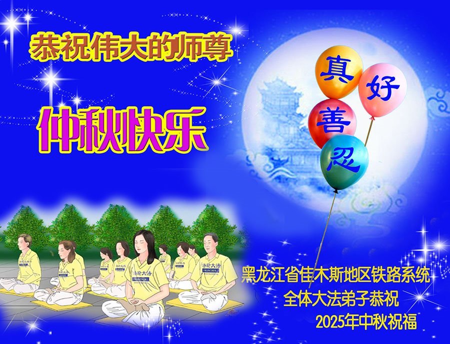 黑龍江省佳木斯鐵路系統大法弟子恭祝偉大的師尊中秋快樂!