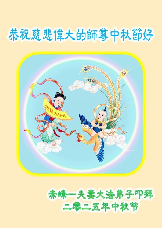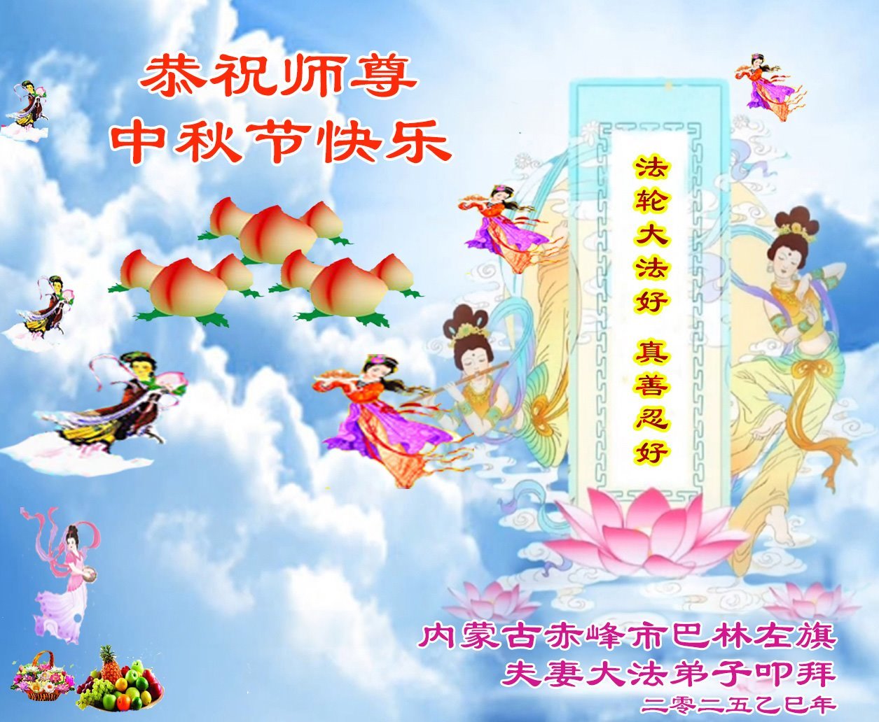 內蒙古赤峰一夫妻大法弟子恭祝慈悲偉大的師尊中秋節快樂!