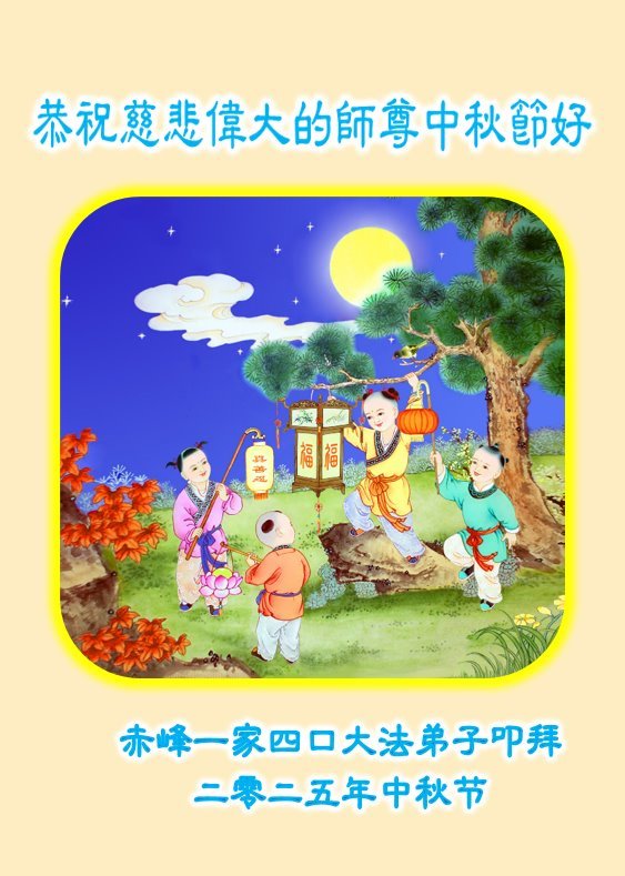 內蒙古赤峰一家四口大法弟子恭祝慈悲偉大的師尊中秋節快樂!