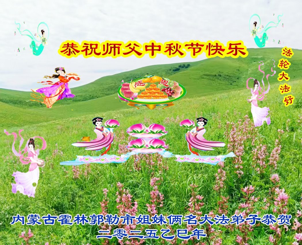 內蒙古自治區通遼市霍林郭勒市姐妹倆大法弟子恭祝師尊中秋節快樂!