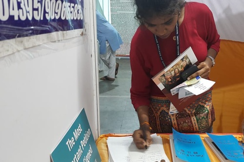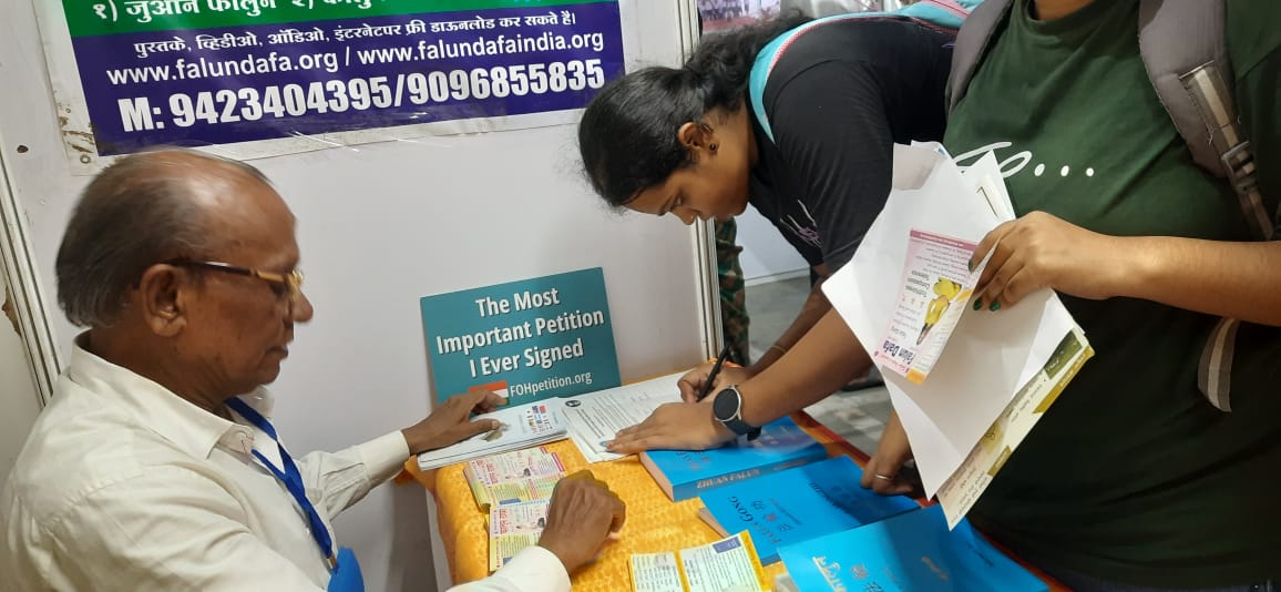 參觀者了解真相在請願書上簽名聲援法輪功學員們向參觀者講述了法輪功在中國遭受的迫害,並喚起人們對印度反強摘器官聯盟(FOH)的年度請願活動予以關注。這一活動由非政府組織「醫生反對強摘器官聯盟」和「終止移植虐待聯盟」發起,向G7+7國家(註﹕G7國家為美國、加拿大、法國、德國、意大利、日本、英國,+7國家為阿根廷、澳大利亞、印度、以色列、墨西哥、韓國及台灣)遞交請願書,譴責中共強摘法輪功學員和其他良心犯器官的罪行。了解迫害真相後,許多人在請願書上簽名,聲援制止這場暴行。