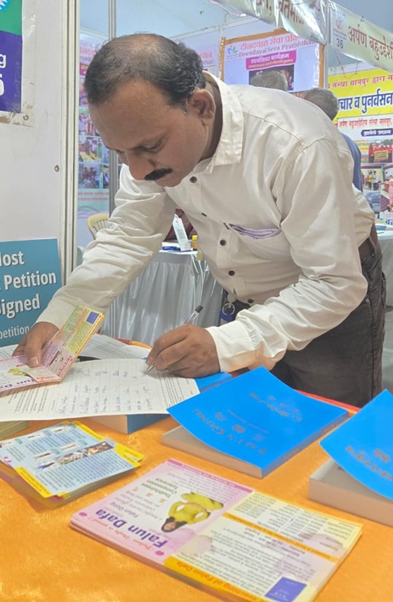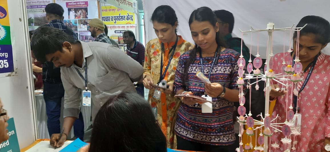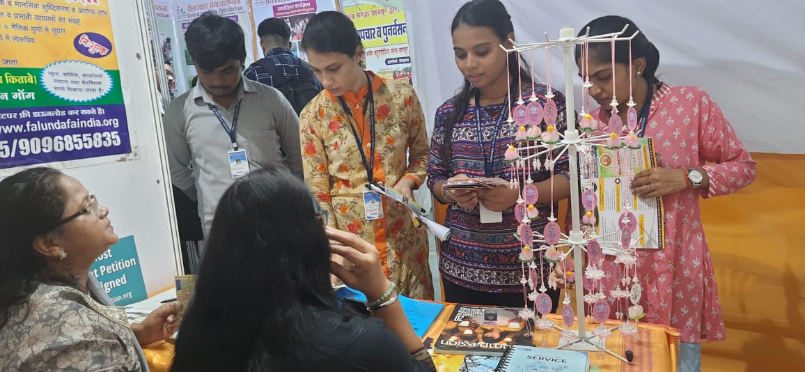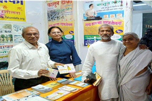 著名的社會工作者拉文德拉﹒科爾赫博士(Dr. Ravindra Kolhe)和斯米塔﹒科爾赫(Smita Kolhe),因數十年來在偏遠部落地區服務而受到表彰,他們參觀了展會上的法輪功展位。他們的到來也激勵了更多的參觀者前來了解法輪大法。