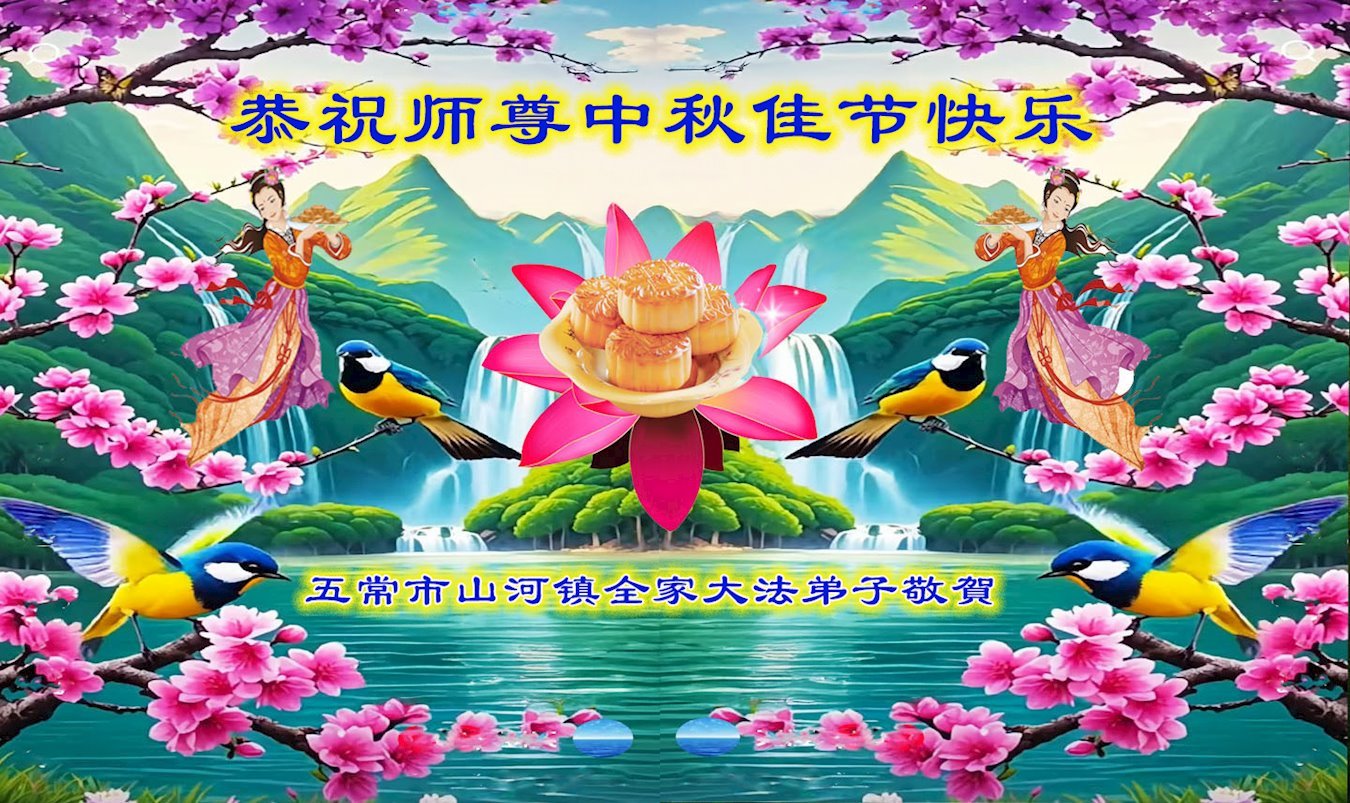 黑龍江省哈爾濱市五常市山河鎮大法弟子攜全家恭祝師父中秋佳節快樂!
