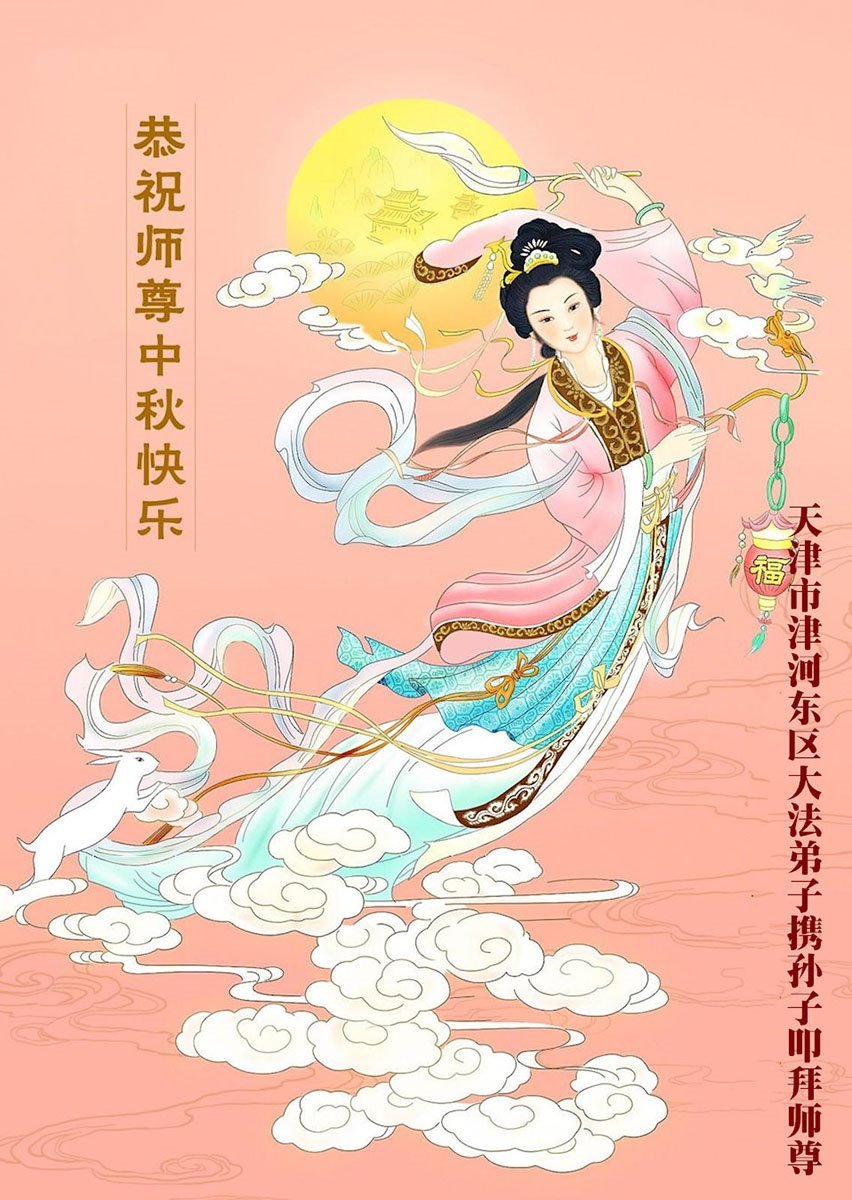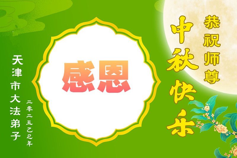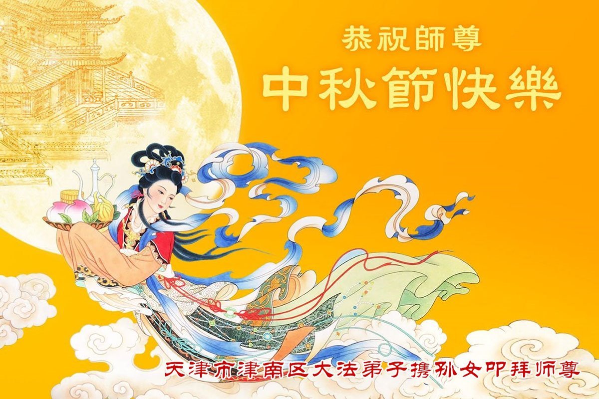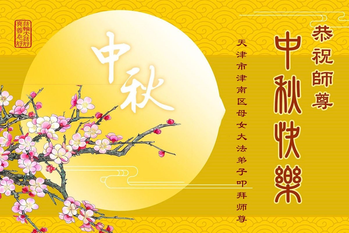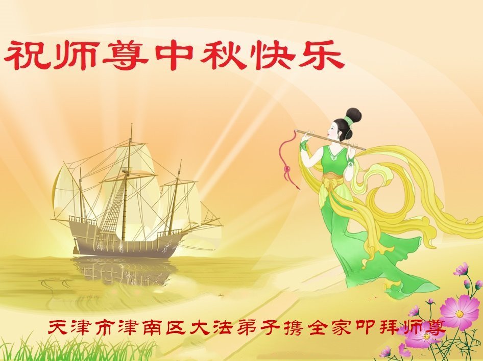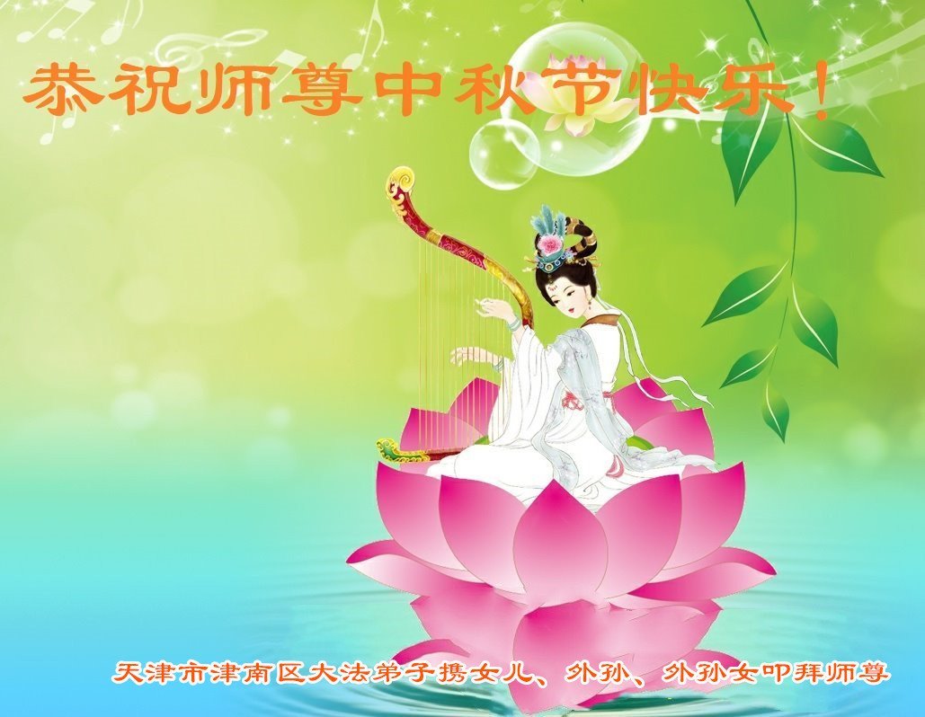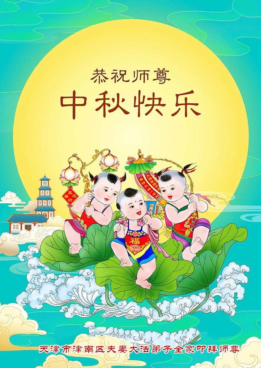 天津市津南區夫妻大法弟子全家恭祝慈悲偉大的師尊中秋快樂!