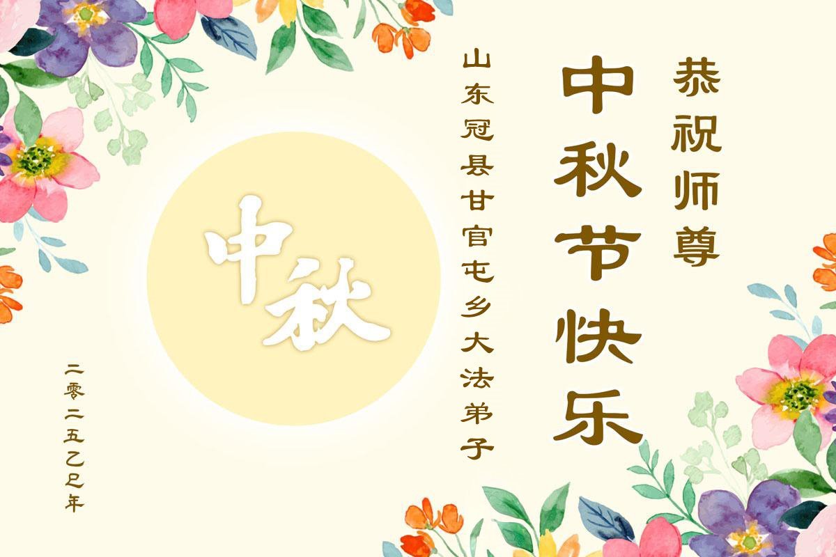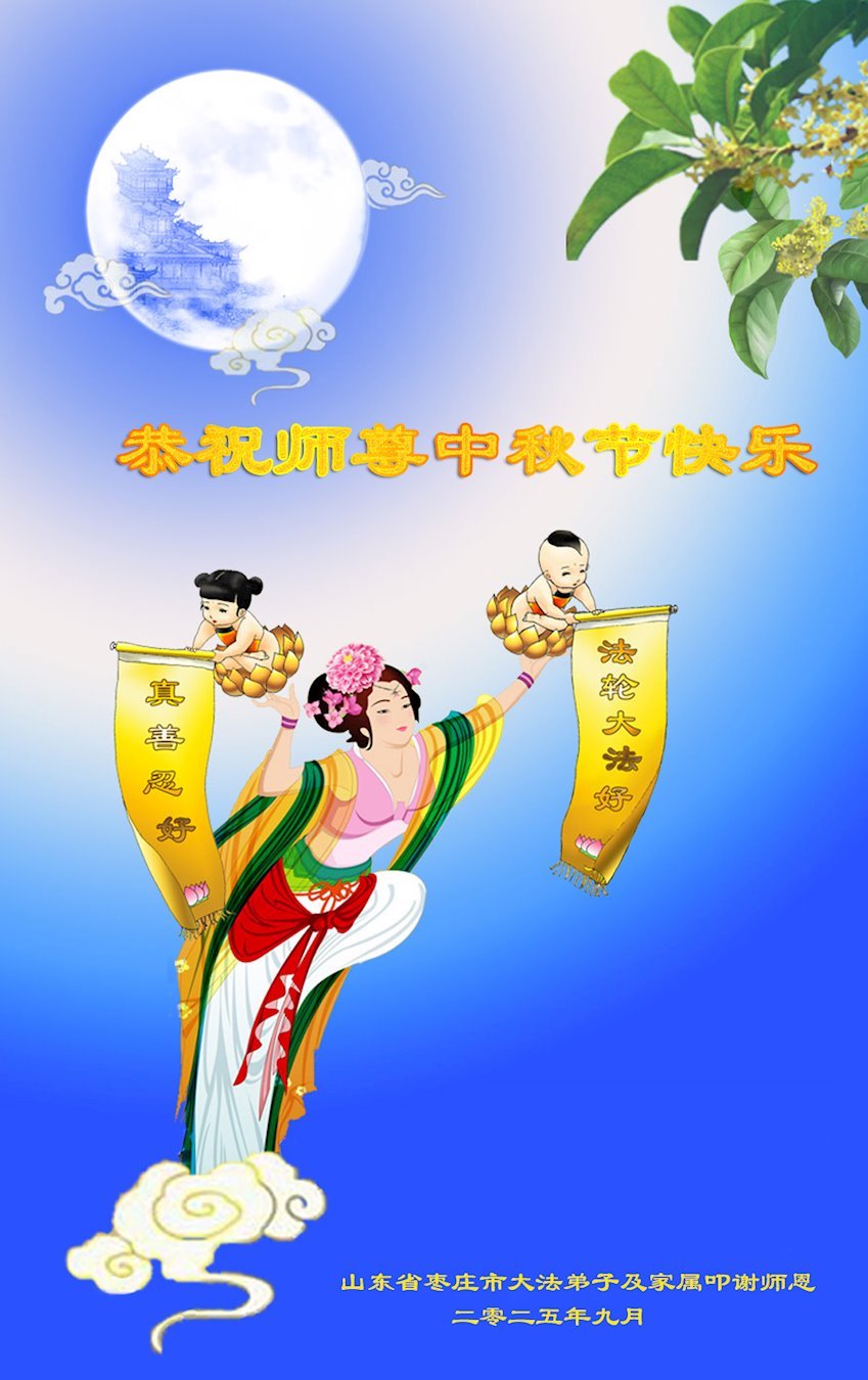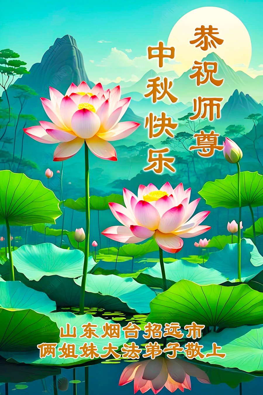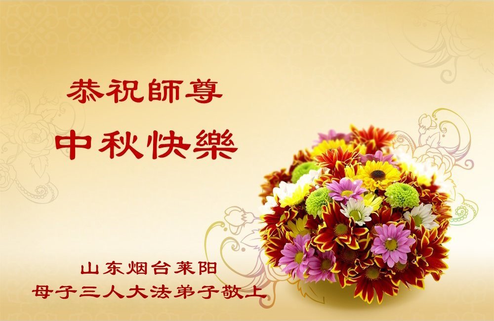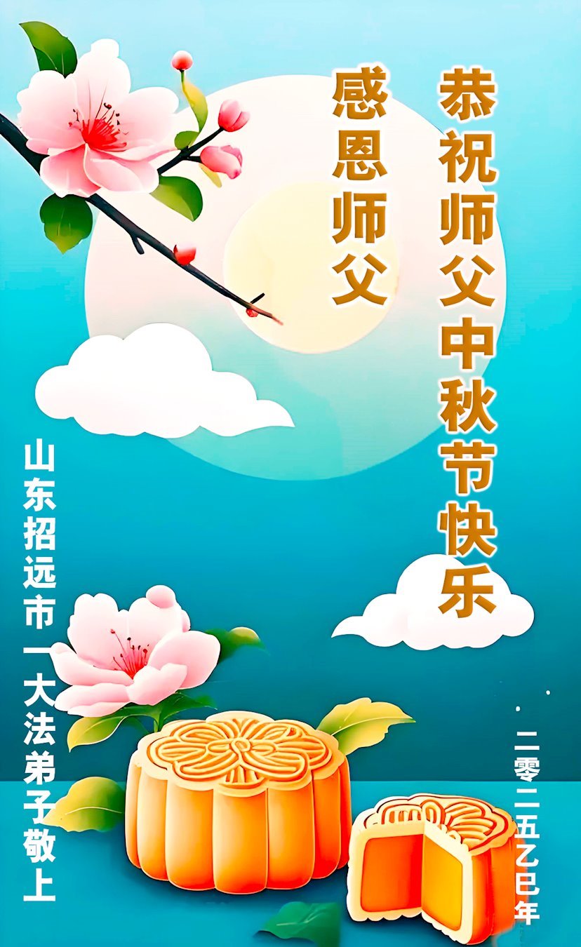 每逢佳節倍思親,又是一年中秋節,我們山東梁山大法弟子想念師父,雖然我們從未見過師父,但是我們時時刻刻倍感師父的關心和愛護!千言萬語都表達不盡弟子對師父的感恩!弟子無以回報,唯有在今後的日子裏,謹記師尊的教誨,修好自己,相互配合做好三件事,助師正法,共同提高,惟願師尊笑!恭迎師父早日回中國大陸與弟子團圓!